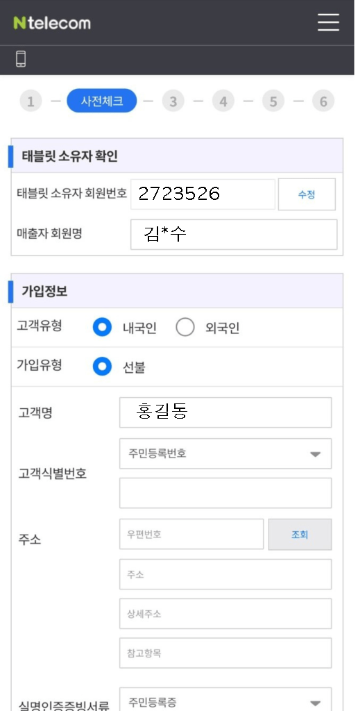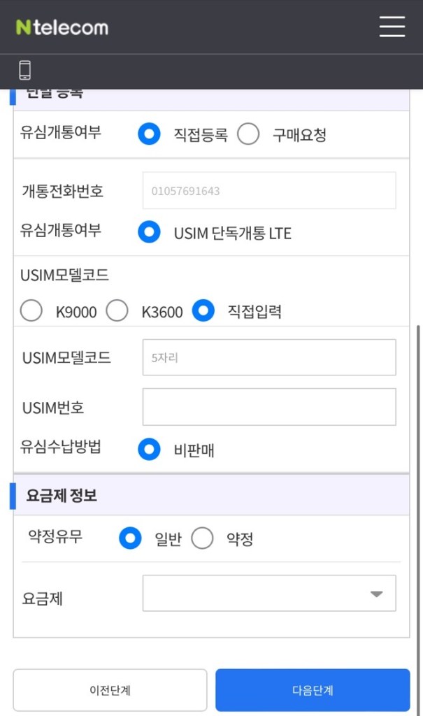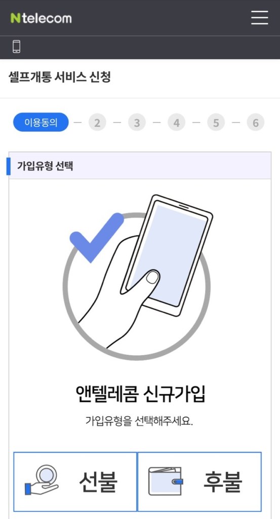진행할 요금제에 맞춰 선불/후불을 선택해 진행합니다